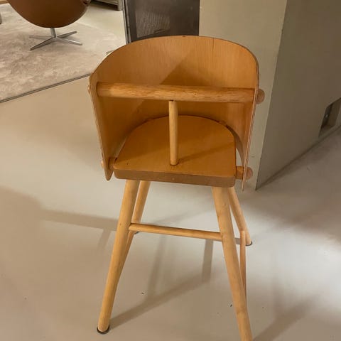 Artek syöttötuoli, liimaukset kunnossa, tukeva. Alkuperäisessä kunnossa, ei entisöity. Kulumaa vain selkänojan reunoissa ja tuolinjaloissa, kuten kuvissa näkyy.