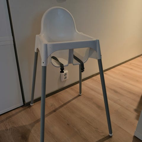 Valkoinen Ikean Antilop- syöttötuoli. Turvavyöt toimii ja jalat irroitettavat joten kulkee esim. mökille mukaan tai saa helposti varastoon jos pikkuvieraita varten. Maksuna Mobilepay.