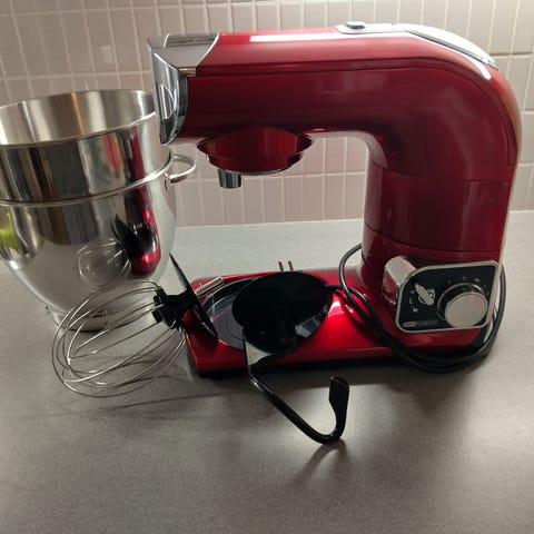 Mukaan tulee: Alkuperäinen pakkaus, roiskesuoja, vispilä, taikinakoukku ja sekoitin.