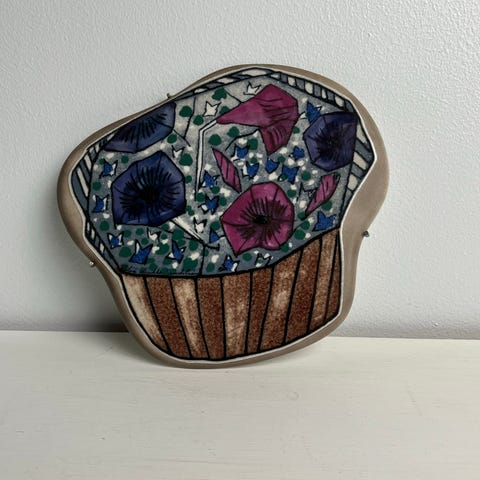 Arabia seinälaatta, jossa on kukkakuvio. Suunnittelija Heljä Liukko-Sundström