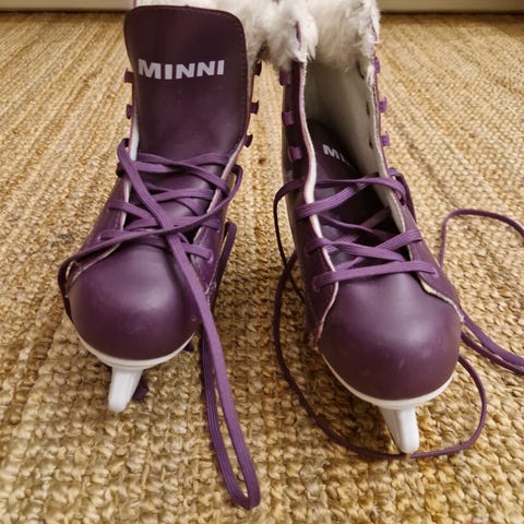 Hyväkuntoiset tyttöjen Minni-luistimet. Ei paljoa käytetty, mutta jotain pientä tummentumaa nauhoissa/karvareunuksessa on. Siistit vielä käyttöön. Sisämitta raksamitalla n.20cm.
