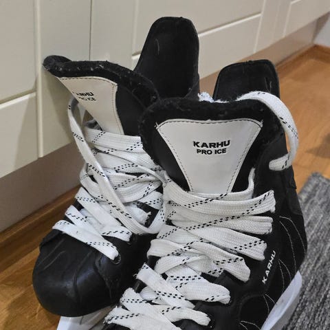 Myydään hyväkuntoiset 35 koon (noin 22cm) luistimet. Luistimien kärjestä kangas kulunut (kuva), muutoin mielestäni oikein hyvä kuntoiset.