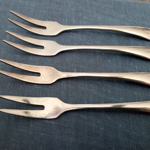 Pienet haarukat 6 kpl. Vintage. Pituus 12cm. Varsi ilmeisesti ruusupuuta. Nouto / lähetys ostajan lukuun.
