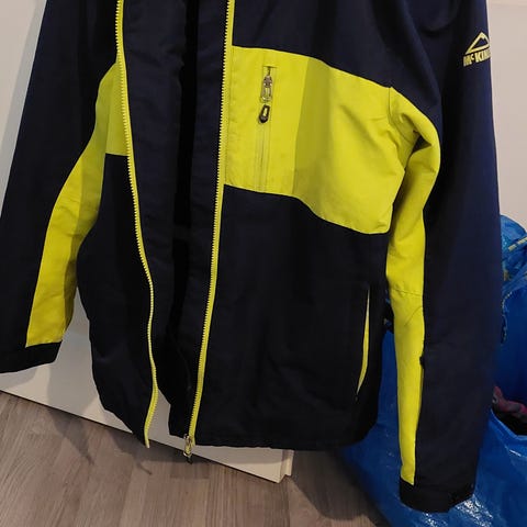 Miesten McKinley toppatakki, koko L/52. Hihojen alapuolella valkoisessa muutama haalea likaviiru, muuten tosi hyväkuntoinen. Irrotettava huppu, helmassa kiristysnyöri ja sisäpuolella erillinen lumilukko.