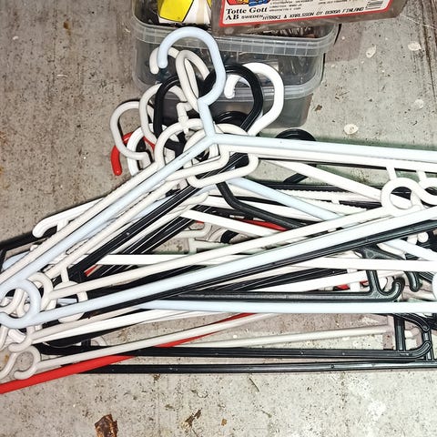 Puinen henkari, jossa voi taitettuna säilyttää housuja, liinoja, huivia, hameita yms.