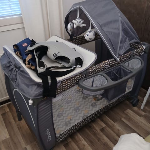 Matkasänky, joka on helppo ottaa mukaan kesämökille, isovanhemmille, hotellihuoneeseen tai vuokramökkiin. Sänky on helppo avata ja vie hyvin vähän tilaa varastossa. Lisäpohja, käytännöllinen lisävaruste, joka nostaa matkasängyn pohjaa korkeammalle tasolle. Tämä helpottaa vauvan hoitotoimia, kuten vaipanvaihtoa ja syöttämistä, ja vähentää vanhemman selän rasitusta, tarjoten ergonomisemman kokemuksen. Nouto/Oulu.