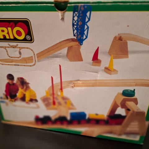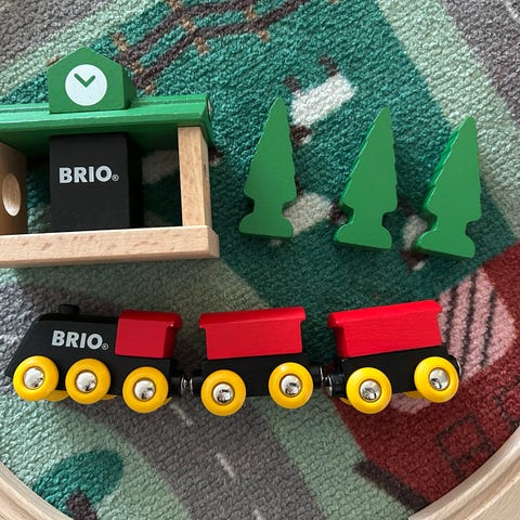 BRIO junarata ja junan osat sisältäen puiset kaariratapalat, punaiset ja harmaat junanvaunut sekä kaksi junan kuljettajahahmoa. Sopii lasten leikkeihin ja kehittää mielikuvitusta ja motorisia taitoja.