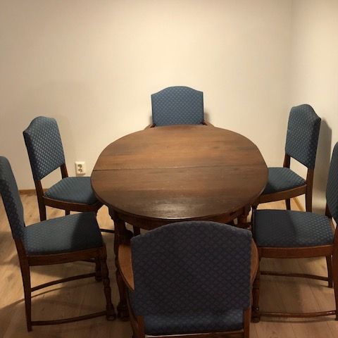 6 tuolia yhteensä ja jatkopala löytyy pöytään.