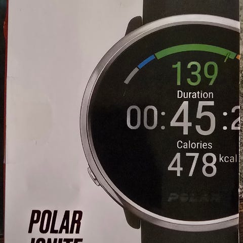 Polar Ignite älykello, jossa vaalea ranneke. Kello on suunniteltu aktiiviseen käyttöön ja sisältää useita urheiluun ja hyvinvointiin liittyviä ominaisuuksia, kuten sykemittaus, unenlaatu ja unen mittaus jne..