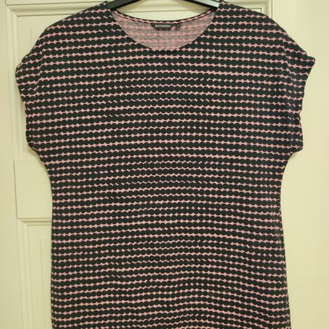 Marimekko Nuoto mustavalkoinen T-paita, koko M. Kainaloissa pientä kellastumaa (näkyy kuvassa), muuten erittäin hyvässä kunnossa. Joustavaa trikoota.