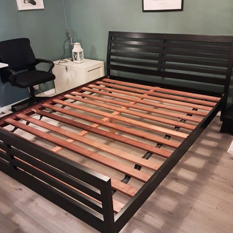Toisesta sängystä jalat irroitettu säilytyksen vuoksi.