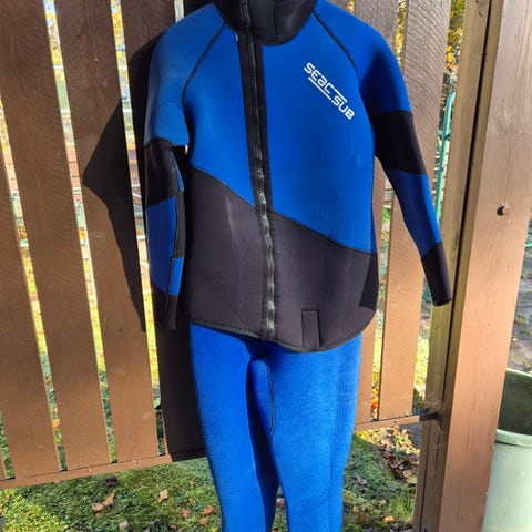 Myydään Seacin märkäpuku seuraavalle tarvitsijalle. Kokomerkintää en löytänyt mistään, mutta olen itse 174cm ja n.65kg suhteellisen normaalivartaloinen ja puku on kohtuu tiukka (kuten toki kuuluukin).