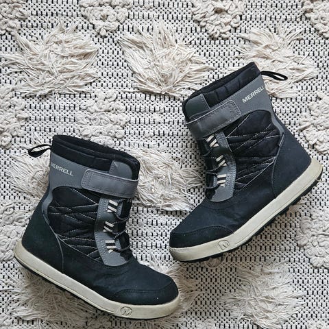 Siistit, kosteudenpitävät Merrell talvikengät tarrakiinnityksellä. Tarroja ei ole auottu, joten ovat pitävät.