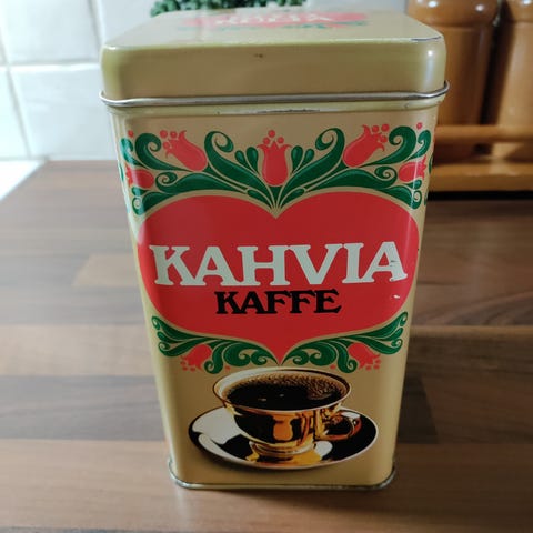 Pauligin peltinen kahvipurkki. Siisti päältä ja sisältä.