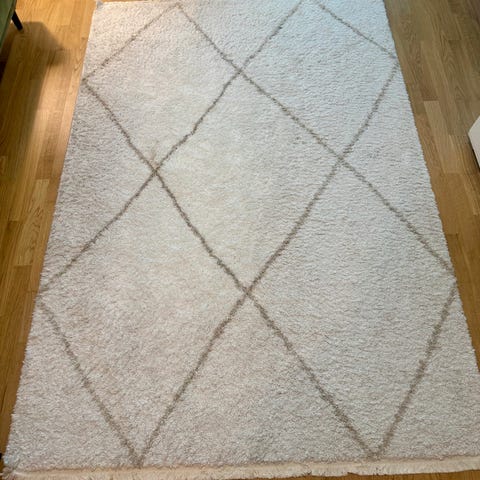 Myyntiin vuoden käytössä ollut Asko Titan matto. Koko 200x290 cm, väri valkoinen ja beige.