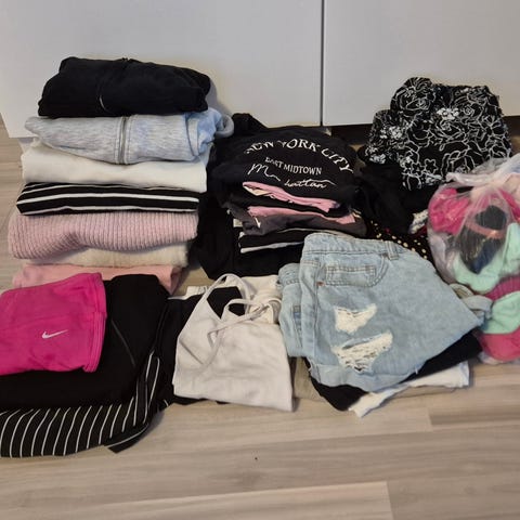 Hyväkuntoiset, siistit ja ehjät S-kokoiset kuvissa näkyvät vaatteet myydään yhtenä pakettina.