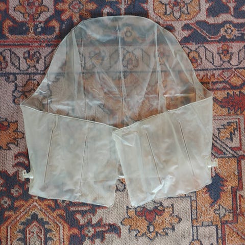 Päällinen hyvin siistissä kunnossa, puhallettavassa osassa jälki, joka näkyy kuvassa.
