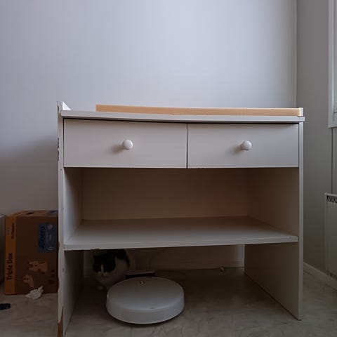 Lasten hoitopöytä, hoitopöydän osuus myös nostettavissa ylös jolloin muuttuu lipastoksi. Laatikkoihin mahtuu paljon vaatteita tai leluja.