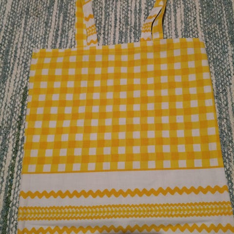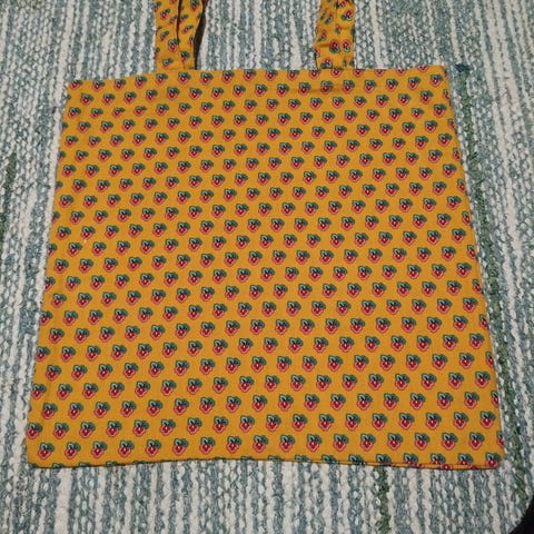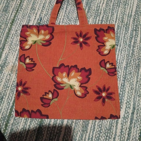 Itse tehty kangaskassi kierrätyskankaasta, on Tampellan vintage kankaasta.