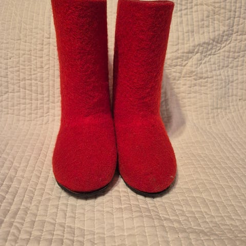 Hyvässä käytetyssä kunnossa olevat Lahtiset huopikkaat, koossa 27. Ulkonäkö siisti, ainoat moitteet pieni kuluma vasemman kengän ulkoreunalla ja kumipohja hieman irrallaan huopikkaan kärjistä, noin 5mm matkalta, saa korjattua suutarilla tai näppärämpi itse jollain kuumaliimapistoolilla ja puristimella kenties. Sisämitta noin 16,5 cm.