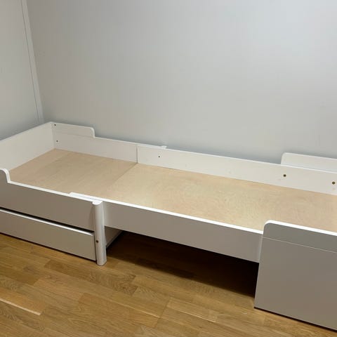 Jolla-sänky ja Lippo-laatikko. Sänkyä on käyttänyt kymmenen vuoden ajan kaksi lasta, ja se on hyvässä kunnossa, mutta siinä on luonnollisesti käytön jälkiä. Vaahtomuovipatja on hyvässä kunnossa ilman tahroja, ja mukaan tulee myös patjansuojus, joka kestää konepesun. Sängynaluslaatikko on vanhempi, mutta toimii hyvin! Allergiakoti, ei lemmikkejä ja hajusteettomat pesuaineet käytössä.