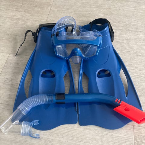 Sukellusmaski- ja snorkkelisetti, jossa useita eri värejä ja malleja. Setti sisältää mustia, keltaisia, sinisiä ja valkoisia sukellusmaskeja sekä yhteensopivia snorkkeleita. Materiaalit ja koot vaihtelevat. Sopii sukellukseen ja snorklaukseen. Kaikki 3 settiä ja uimalasit päälikauppaa