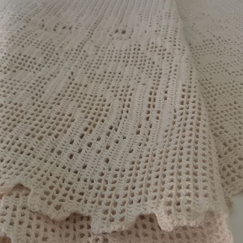 Käsin virkattu kappa pitsiverho. Siisti ja puhdas.