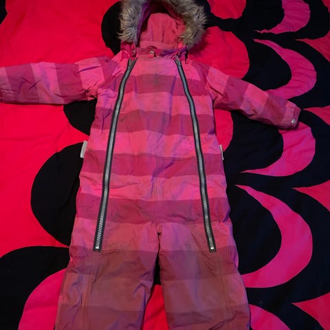 Reilu mitoitus. Erittäin lämmin, fleece-vuori sisäpuolella. Hupussa irrotettava tekoturkisreunus. Hyvässä käytetyssä kunnossa.