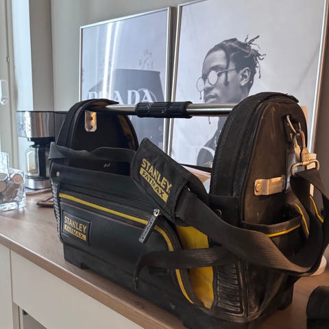 Stanley FatMax työkalulaukku pyörillä. Työkalulaukku on valmistettu kestävästä materiaalista ja siinä on vetokahva sekä pyörät helpottamaan kuljetusta. Sisältää irrotettavan sisälaatikon ja tilavan pääosan työkalujen säilytykseen.