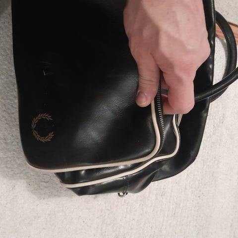 Myydään ylimääräinen reppu ja laukku. Fred Perryn kassista puuttuu hihna, muuten kunnossa.