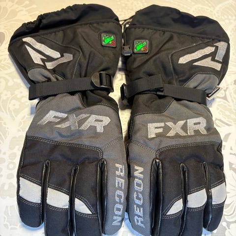 FXR Transfer miesten lämmitettävät talvikäsineet. Kokoa S. Varressa on pieni repeämä joka on ommeltu kiinni. Akut, laturi ja säilytyspussi.