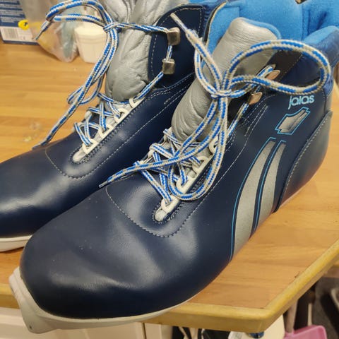 Leveällä lestillä käy koko 47, muutoin suurempi. Perinteiseen eli murtomaahiihtoon. Mieluummin SNS siteisiin käyvät.