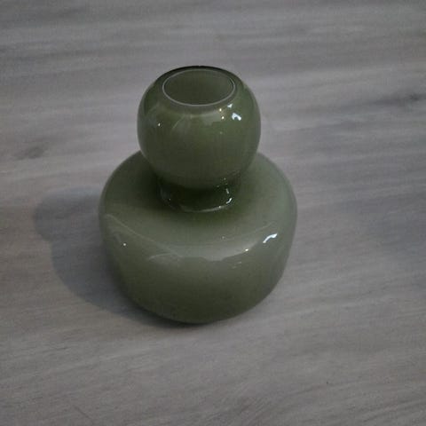 Myytävänä vain koristeena ollut pieni keramiikkamaljakko.