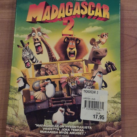 DreamWorks Madagascar 2 DVD-elokuva. Animaatioelokuva, jossa seikkailevat Madagascar-elokuvan hahmot.