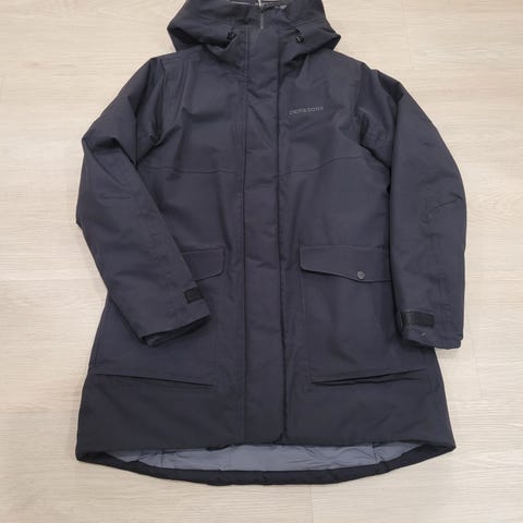 Vähän käytetty talvitakki Didriksons koko 40. Maiharityyppinen. Tikattu vuori. Tilava huppu. Paljon yksityiskohtia. Kiinnittimet kunnossa. Ei kuluneisuutta. Virheetön. Vastaa hyvin kokoaan.