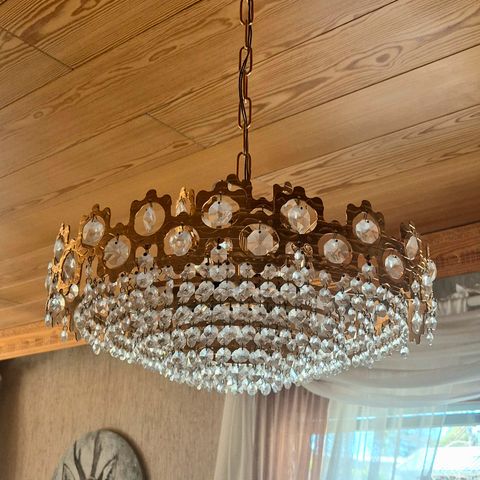 Upea 16 lamppuinen kristallikruunu. Kuvassa kristallit eivät ole asetettu mutta kaikki on tallessa. Lampun koko k 65 l 70