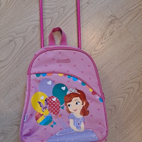 Vetoaisa, 2pyörää.edessä vetoketjutasku, sisällä lenkit tavaroiden kiinnitykseen.Kantokahva
