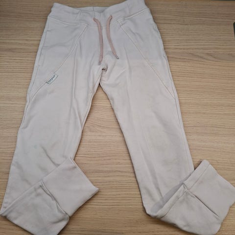 Lahkeissa kuminauha ja vyötäröllä naru joka on irronnut mutta tulee mukana ja saa takaisin.