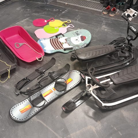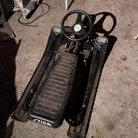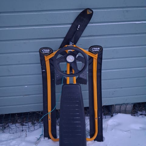 Stiga GT 20€, ei alkuperäisiä suksia vaan laskettelu sukset laitettu alle.