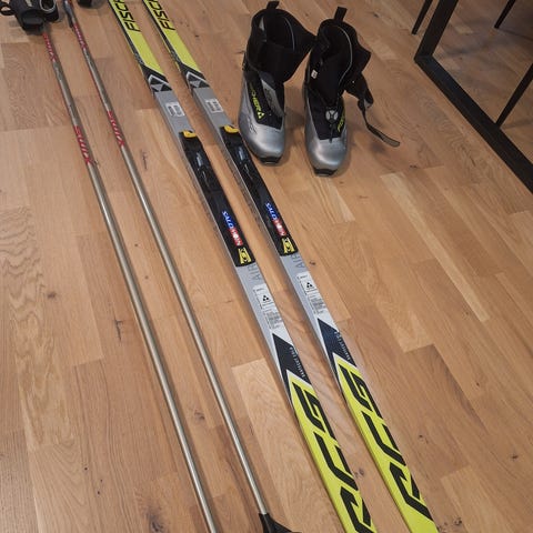 Tästä hyväkuntoinen luisteluhiihtopaketti juniorille. Sukset Fischer rcr skate pituudeltaan 161 cm ja monot Fischer JR Combi kokoa 38. Sauvoja mukaan halutessaan kahdet: One way 145 cm luistelusauvat ja Startin 125 cm yleissauvat.
