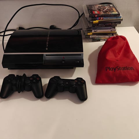 Sony Playstation 3 pelikonsoli lisäohjaimilla ja peleillä