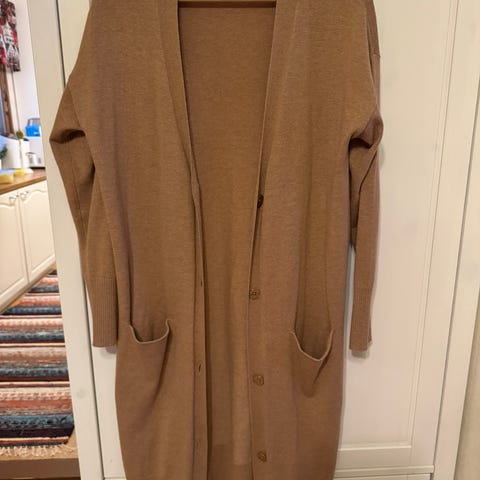 Nanson merino-puuvillainen pitkä neuletakki, vaalea beige. Kunto hyvä, tarkkaan katsomalla esim kainaloalueella hitunen nyppyä (ks kuva). Todella siisti kuitenkin, nyt säilytyksessä ryppyyntynyt. Koko S mutta menee myös M koossa hyvin.