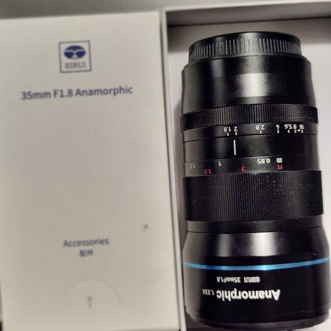 Muutaman kerran käytetty Siruin leffalinssi micro four thirds (eli mft tai M4/3) kiinnityksellä. Sopii Olympuksen, Om-systemin ja Panasonicin kameroihin ainakin. Lasipinnoissa tai objektiivin toiminnassa ei ongelmia.