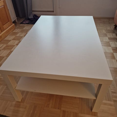 Annetaan hyväkuntoinen sohva pöytä uuden tilalta pois. Yhdessä nurkassa pientä kulumaa.
