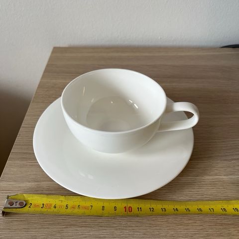 3 kpl kuppeja sekä 2 sinistä ja kaksi valkoista lautasta. Mukin halkisija ylhäältä päin 11,5cm.