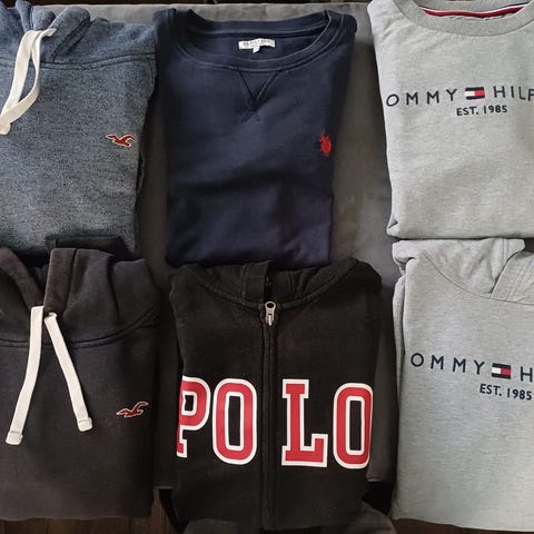 Ehjiä ja puhtaita ja vähän käytettyjä. Koot 176cm ja L. 2kpl Lacoste(harmaa ja t.sin.),3kpl Andy by Frank Dandy(2kpl musta ja 1kpl harmaa), Hummel verkkarit (t.sin) Vyötäröt venytettynä n.46cm, lahkeen pituudet haaroista n.74cm paitsi Hummelit joissa 87cm
