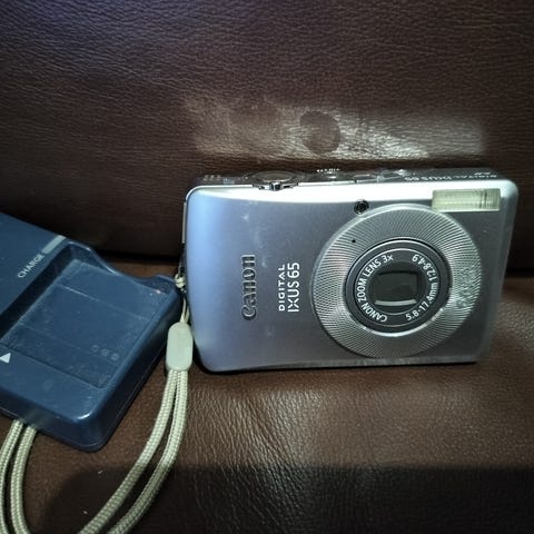 Myydään toimiva hopeanvärinen Canon IXUS 55 digikamera+muistikortti+Canon nahkakotelo.