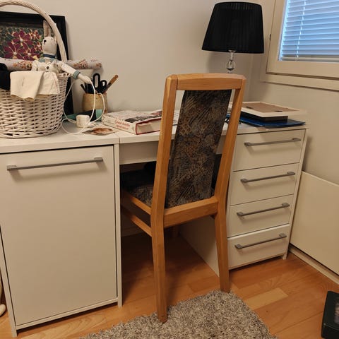 Ikea micke työpöytä, tällä ei itselle tarvetta. Käytönjälkeä on, mutta yleisilmeeltään todella siisti.
