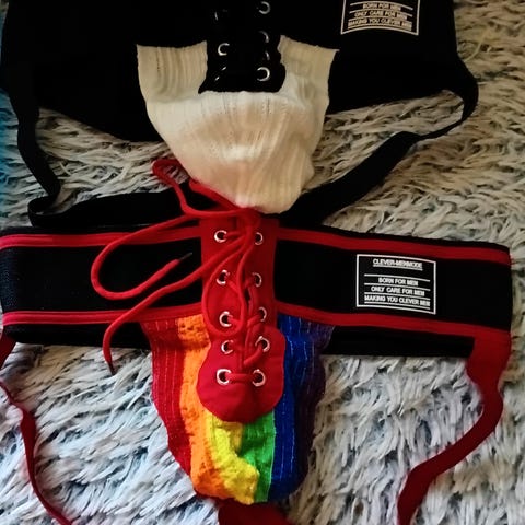 Myydään pakettina 9 kpl miesten jockstrapejä. Merkit 6 x Aussiebum, 1 x Andrew Christian ja 2 x muu merkki. Kaikki kokoa L tai XL. Väreissä valkoista, sinistä ja mustaa. Jockstrapit vähän käytettyjä ja pestyjä.