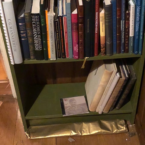 16 banaanilaatikollista kirjoja.